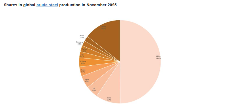 Global crude steel production declined in November 2025, reflecting uneven regional performance, according to data released by the World Steel Association (worldsteel).