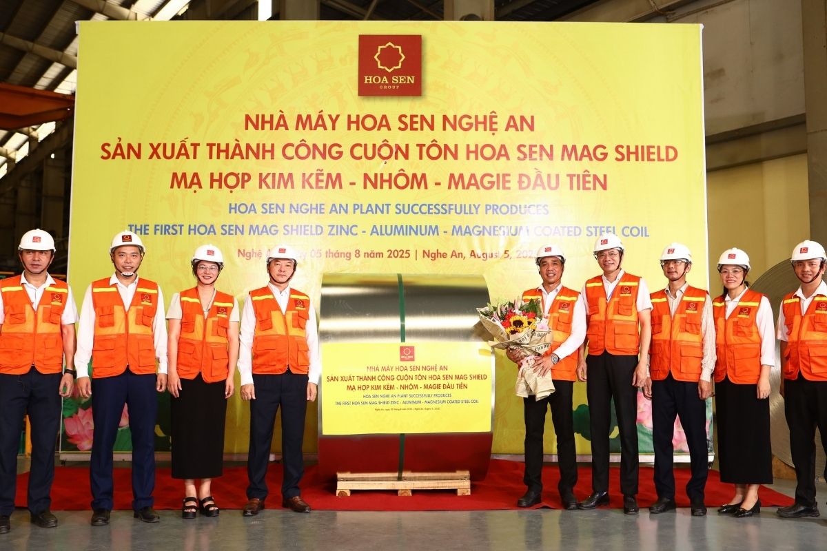 Hoa Sen Group has successfully produced and introduced its first Zinc-Aluminum-Magnesium alloy-coated steel coil under the Hoa Sen Mag Shield brand, marking a significant advancement in the company’s technological innovation strategy. The product was officially launched on August 5, 2025, at the Hoa Sen Nghe An factory.